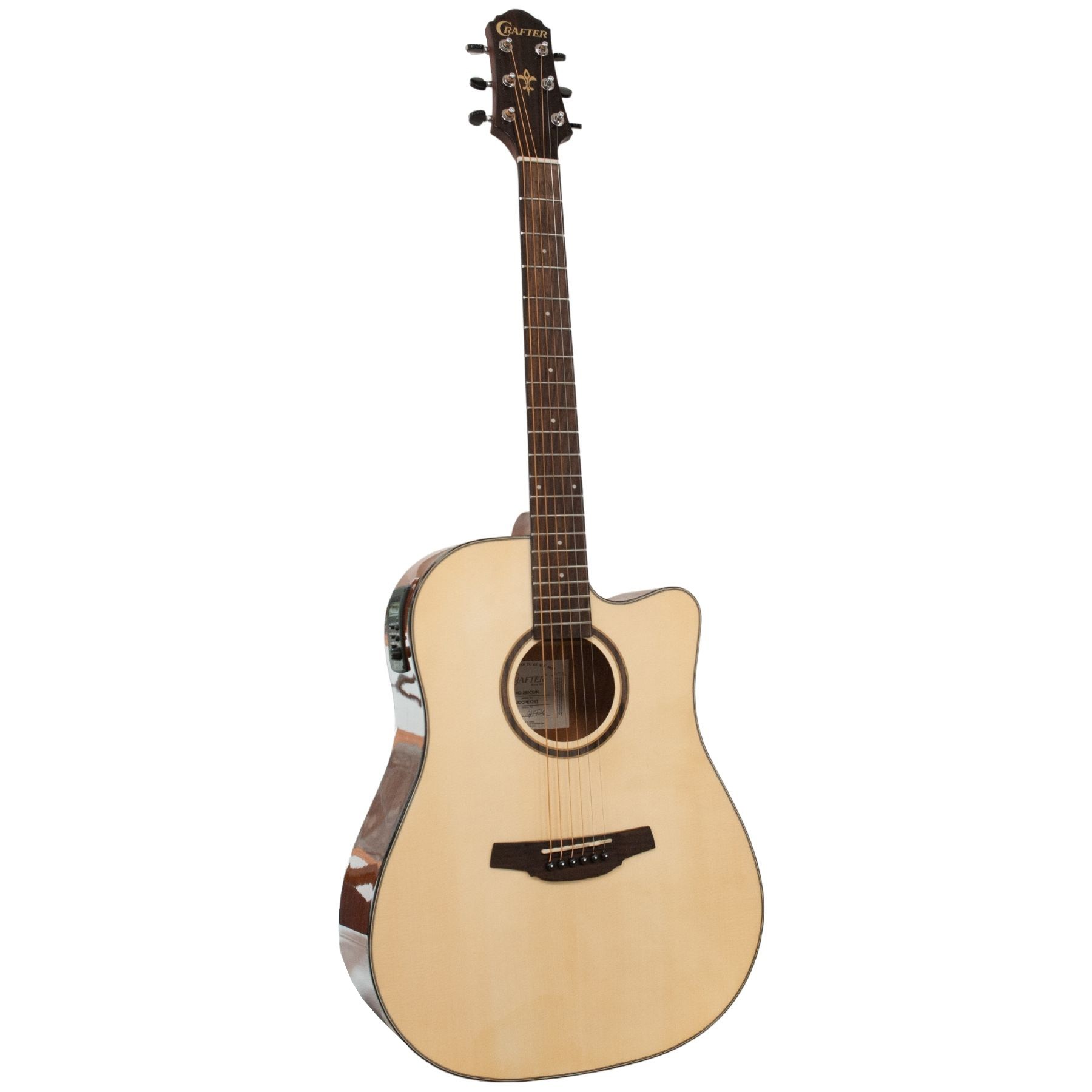 Le dreadnought Crafter rimangono fedeli al retaggio di ciò che ha reso questo stile del body così popolare nel corso degli anni. Uno stile di chitarra collaudato nel tempo, costruito utilizzando una varietà di legni del top come il cedro e l'abete rosso Engelmann. Sul fondo e sulle fasce vengono invece usati mogano, acero e palissandro. Ciò consente a qualsiasi chitarrista di scegliere la sua chitarra preferita.
