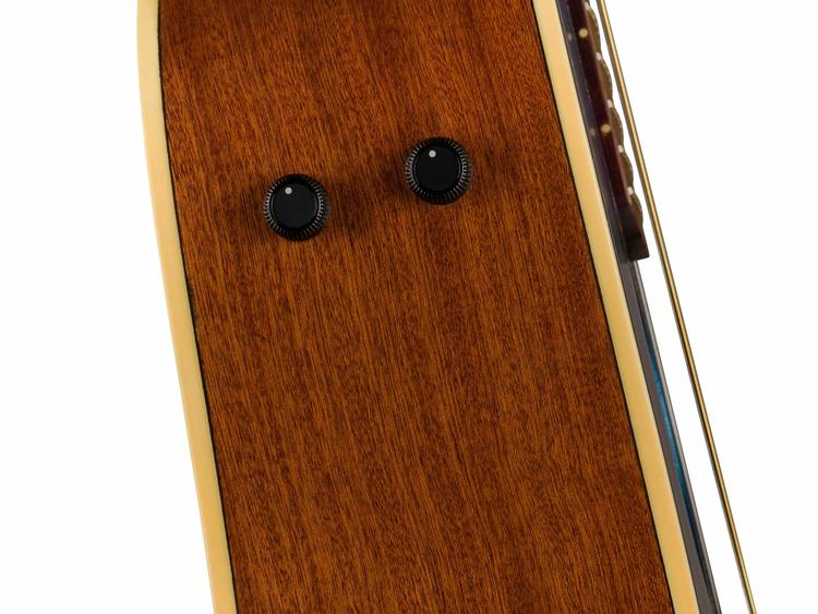 Il manico in nato è progettato con un profilo sottile a "C" che facilita l'esecuzione, con una lunghezza della scala pari a 25.5" (64,77 cm), e una paletta inclinata con 6 meccaniche in linea, per un look inconfondibile che richiama il DNA delle chitarre elettriche Fender. Altri importanti dettagli includono le meccaniche in stile vintage per un'accordatura sempre fluida e precisa, capotasto e ponticello GraphTech NuBone, per un carattere armonico definito e accurato.
