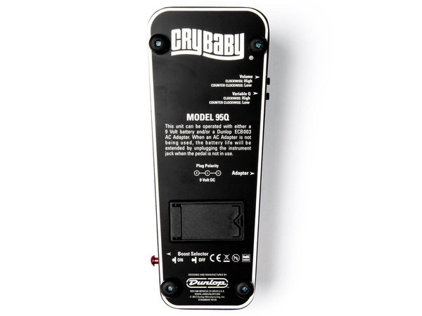 Dunlop ha preso l'originale Crybaby ed ha aggiunto tre delle sue più famose opzioni: il famoso controllo 'Q' che varia l'intensità dell'effetto wah regolando la larghezza di banda, il Volume Boost per un guadagno aggiuntivo fino a +15dB e la funzione Auto-Return che permette di attivare automaticamente l'effetto poggiandod il piede sul pedale. Tutto questo in aggiunta ad un suono wah imponente e versatile.